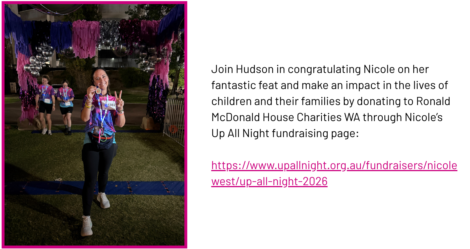 When Nicole West contacted us regarding her fourth Up All Night Walk to benefit Ronald McDonald House Charities WA, Hudson eagerly jumped at the chance to support this worthy cause!