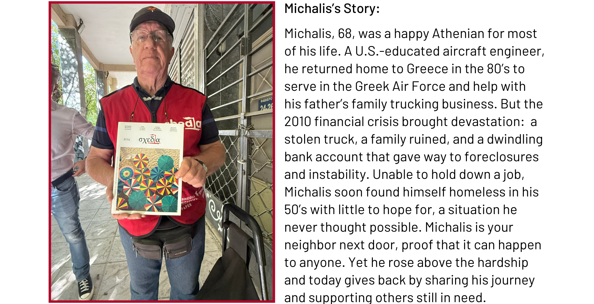 As Team Athens followed Michalis through hidden alcoves of the city, including emergency shelters, long-term housing facilities, soup kitchens, and rehabilitations centers, Michalis shed light on the daily struggles of people living on the margins. He shared stories of resilience, solidarity, and hope through Shedia’s programs.