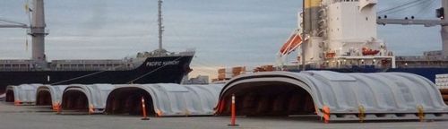 Barge covers this size are very rarely transported across the United States, much less internationally, and therefore, the project required expert planning to ensure a smooth journey. Physical obstructions, narrow roadways, tunnels and bridges were identified, analyzed, and addressed. Hudson also worked with local agents and authorities throughout the United States and Canada to ensure compliance with local road regulations. For the route across the Pacific, Hudson applied its GOLD© Standard method to select a suitable vessel and transit mode which maximized the vessel’s operational load distribution while ensuring the covers would not be damaged during transit.