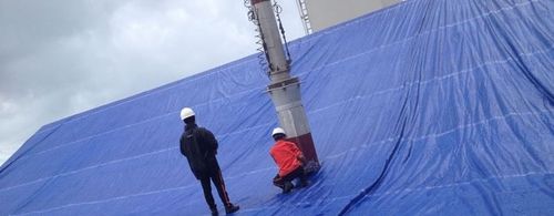 As Hudson brought the vessel carrying the customer’s cargo to port, Hudson's surveyors identified problematic weather patterns and began sourcing materials and personnel. The vessel’s master cracked open the hatch to be unloaded, and Hudson personnel immediately covered the opening with a thick, waterproof tarp. In order to prevent the pooling of water on the hatch, the tarp was constructed at an angle to allow water to flow harmlessly off the tarp and into the sea. Hudson’s personnel then measured and cut a precise opening in the tarp, allowing the vacuvator access to the sensitive cargo below.