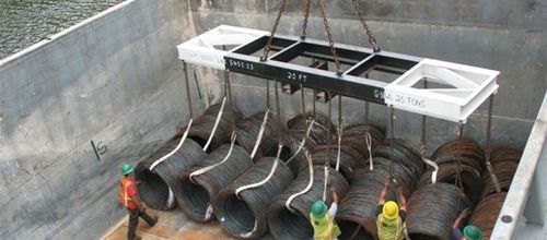 Steel bars are lashed together with signode tape (a form of steel strip engineered for a higher break strength at a thinner gauge and lower in cost than normal steels trapping) and loaded onto the vessel. Hudson does not simply secure steel with some wire and turn buckles and then instruct the ship master to tighten everything enroute after it inevitably becomes loose. Hudson takes great care in using the proper equipment to make sure the job is done correctly the first time, avoiding any unnecessary surprises or extra work during or after transit.