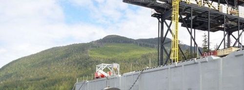The shore facility was constructed by anchoring a large barge a suitable distance from shore, then linking the barge to the mainland using a foot bridge and a conveyor. The facility was capable of handling vessels up to 40,000MT DWT and the conveyor was capable of loading up to 2,000MT per hour. By using this type of set up, Hudson was able to locate the facility 1.5 miles from the primary crusher machine while still being able to service all types of bulk carrier vessels regardless of gearing.