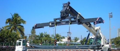 In the photo to the right, shore gear is used to unload a gearless ship. In accordance with COST© principles, Hudson strives for flexibility and has access to equipment to utilize either a ship’s gear or shore cranes. When efficiency dictates, shore cranes are used to supplement ship gear or to replace damaged or slow gear to increase load or discharge speeds. Hudson at times will also discharge straight into barges to accommodate clients with those requirements using the principles of COST©.